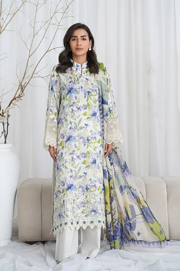 Chikankari + Printed Lawn With Printed Bamber Chiffon Dupatta