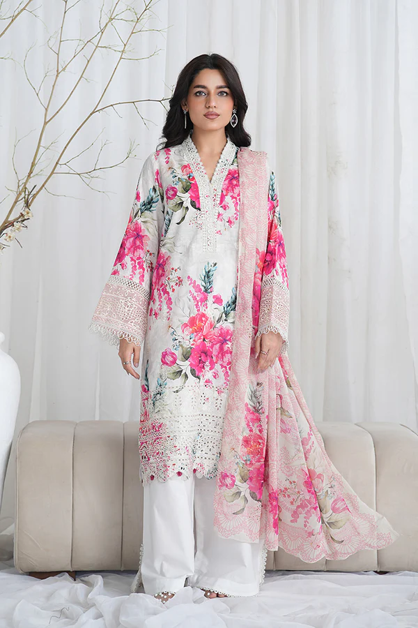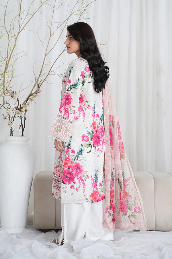 Chikankari + Printed Lawn With Printed Bamber Chiffon Dupatta